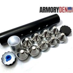 | Additional Information: | A solvent trap is a firearm cleaning system that is designed to capture (or “trap”) cleaning solvent during the bore cleaning process, in order to transport and dispose of it efficiently, safely and in an environmentally friendly manner. Solvent traps attach to a firearms muzzle and feature cups, also referred to as dry storage cups, dividers, among other interchangeable names. Solvent traps are designed in a way that ensures a bullet may not pass through them. The BATF defines a solvent trap as a “firearm cleaning accessory”, but to make certain that a solvent trap remains within the BATF’s “firearm cleaning accessory” definition, it should be clear that they are constructed to serve such a purpose. Our solvent traps are designed and manufactured to serve one primary purpose, which is as a firearm cleaning system. We do not endorse, support or recommend using our solvent traps or solvent trap dry storage cups to silence, muffle or diminish the report of a firearm. Rather than selling our solvent trap tubes, dry storage cups and end caps separately, our solvent trap cleaning kits include all parts needed, and they are sold for cleaning purposes only. Modifying our products and/or using them for any other uses are not recommended or endorsed by Armory Den. Solvent traps can be purchased legally without a Form 1. However, you cannot alter, modify, or redesign them into a device for muffling, silencing, or diminishing the report of a firearm without first, paying the NFA Mandated $200 Tax Stamp (if applicable) and receiving back an approved From 1 from the BATFE. Please be aware of the restrictions and regulations and those within the states you reside. Only after getting the approved Form 1 back can you make any modifications to the product. A crime is committed if you make the alterations before obtaining the tax stamp. |