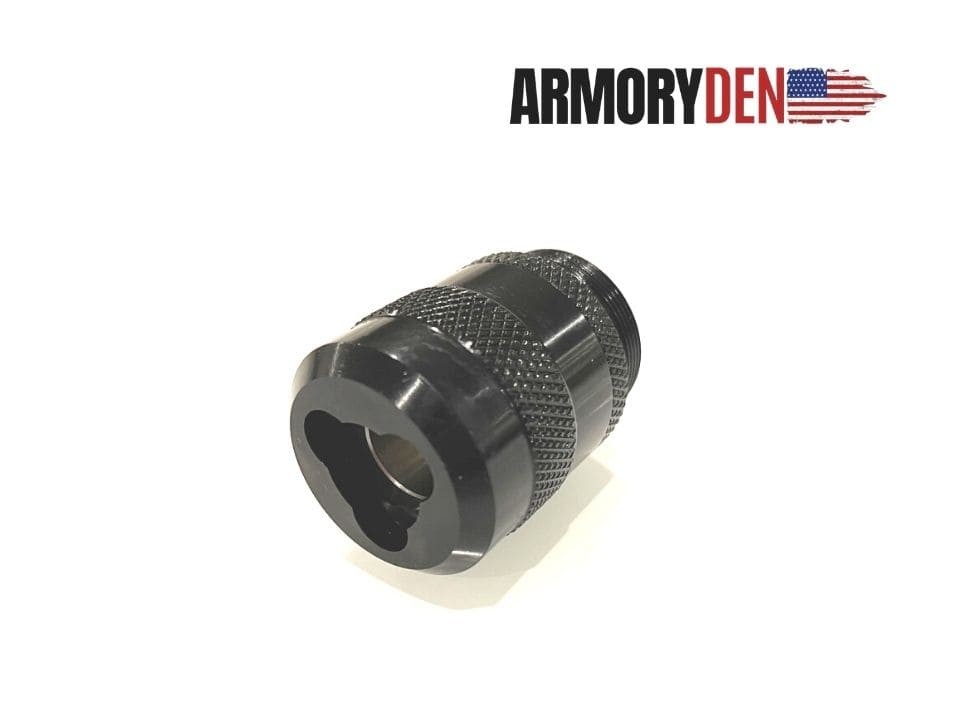 For those in need of a 9mm 3-Lug Quick Detach solution, Armory Den AD Trinity Trilug holds its own against other three lug adapters on the market. Using a 1-3/16×24″ thread, this will adapt to B Cell Tubes and also to our. Threads directly into B tubes and can be used on the 1.57″ Titanium and Aluminum AST Kits – These kits have a 1.375×24 TPI Thread Pitch but come with a 1-3/16×24″ adapter and therefore work perfectly with the AD Trinity Trilug! Coming in at around half a pound, this trilug is right on par with competition in terms of weight. It is important to note that the 3-Lug Mount Muzzle Brake is not included.