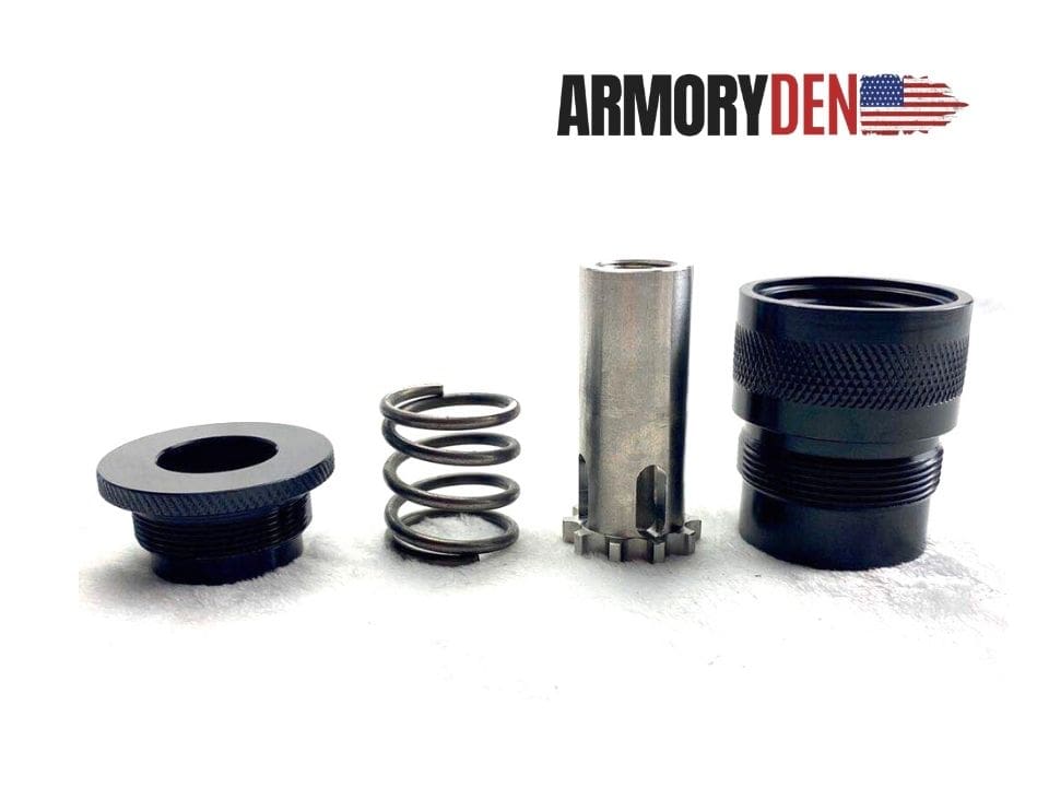 | Booster Lock-out Notice: | This lock out design allows your booster to attach to a rifle or a pistol with a fixed barrel. Simply change out the spring in your booster and replace it with the lock out. You must shoot with the lock out a few rounds and then re-tighten the booster after the part has settled. This is a very important step and cannot be skipped or damage may occur. Armory Den will not be held responsible for damages if this product is incorrectly used. |