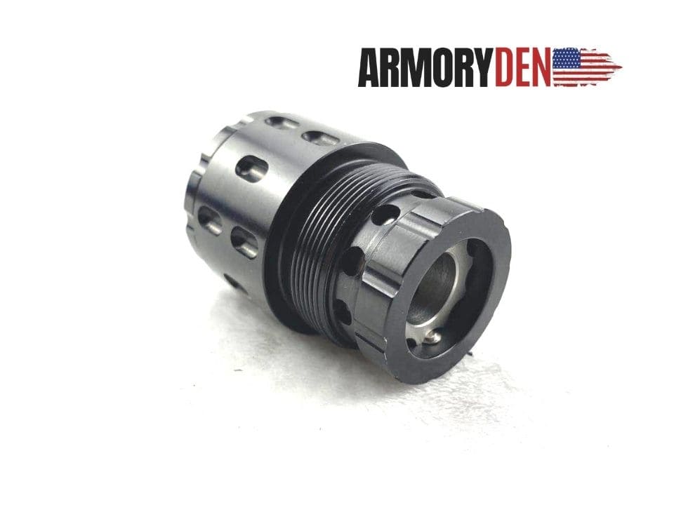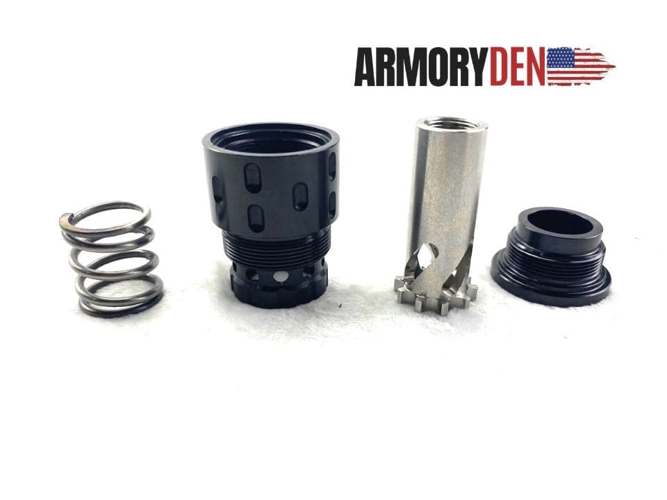 | Booster Lock-out Notice: | This lock out design allows your booster to attach to a rifle or a pistol with a fixed barrel. Simply change out the spring in your booster and replace it with the lock out. You must shoot with the lock out a few rounds and then re-tighten the booster after the part has settled. This is a very important step and cannot be skipped or damage may occur. Armory Den will not be held responsible for damages if this product is incorrectly used. |