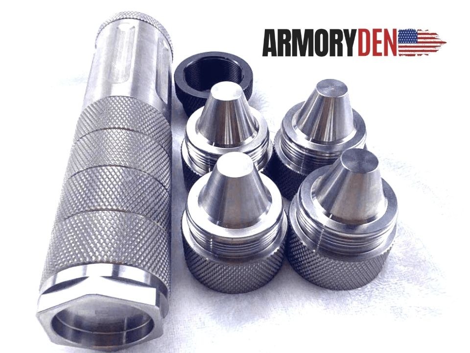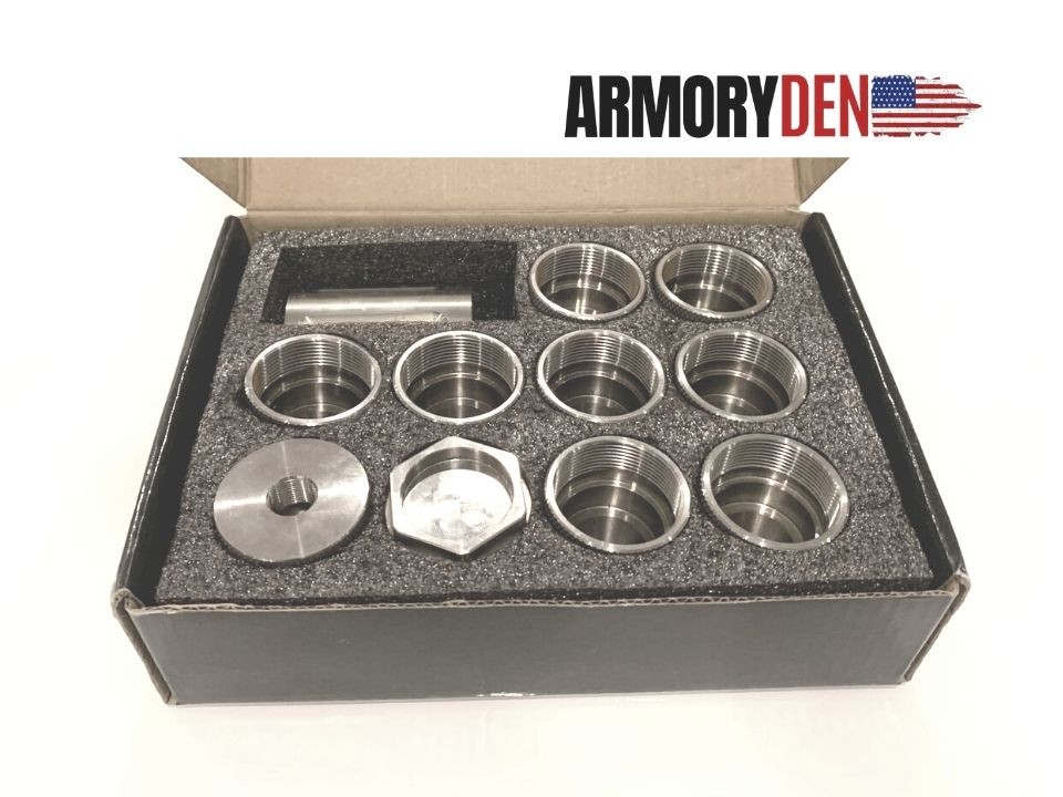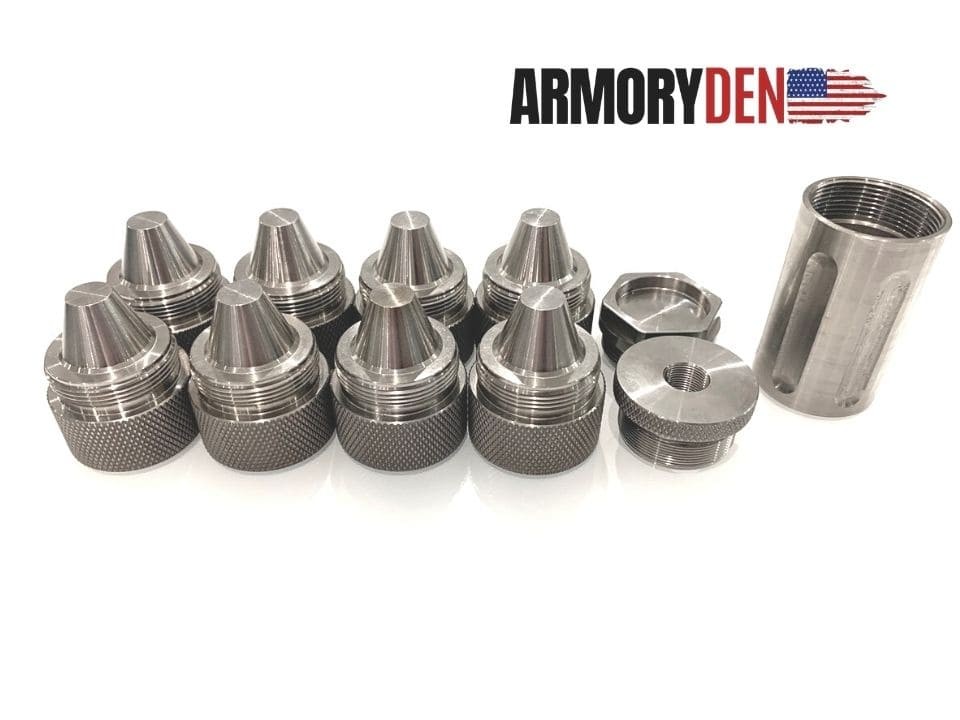 This setup is for those that want to adapt to various industry muzzle adapters, for purposes such as a quick detach setup to simplify the the connection and disconnection of the solvent trap for quick cleaning! Get this all inclusive adaptive solvent trap today, rather than paying more for less elsewhere. The Den always delivers more for less!
